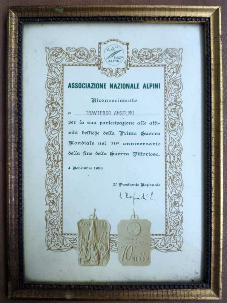Al cumplir sus 18 años y con Italia ingresando en la Primera Guerra Mundial, fue convocado a enrolarse en el ejército. Luego de un breve entrenamiento fue enviado al frente de batalla.