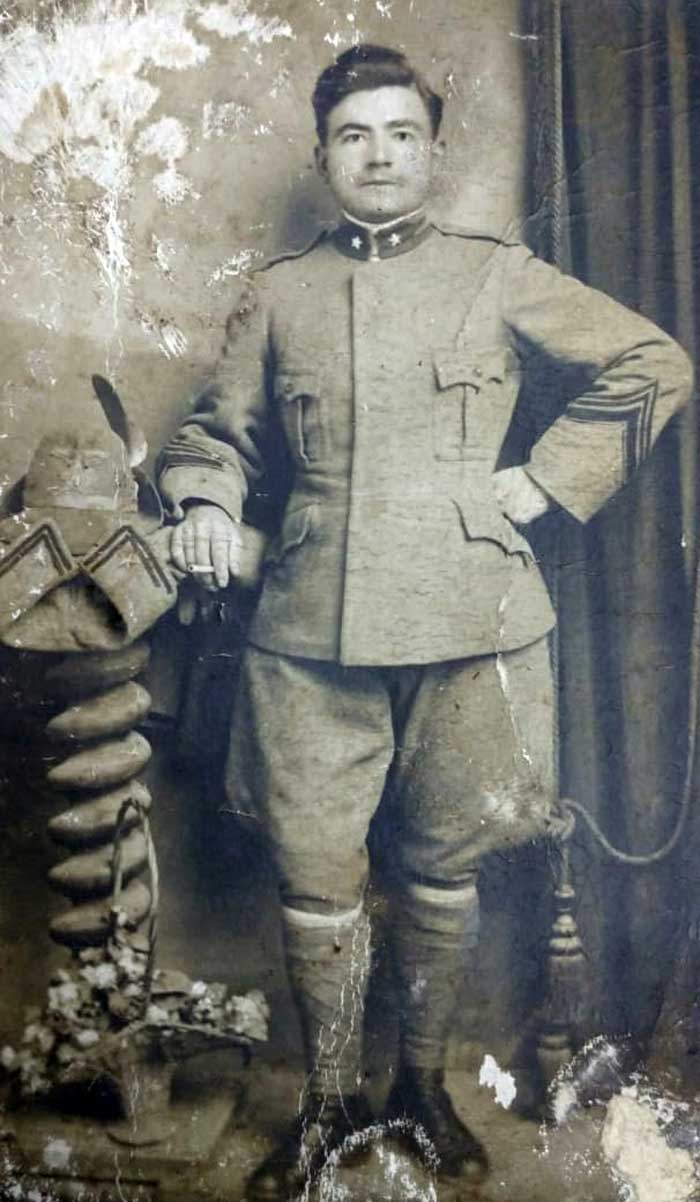 En algunas oportunidades le tocó estar en la primera línea de fuego de aquella guerra de trincheras -la más terrible de todas porque el hombre pone su cuerpo donde el coraje era acompañado por altos niveles de adrenalina. Tenía que descargar su fusil sin un punto fijo para así poder pasar a la segunda trinchera y mientras recargaba el arma, encomendarse a Dios "gambetear" el fuego de los enemigos. Nunca supo si hirió o mató a alguno de ellos.