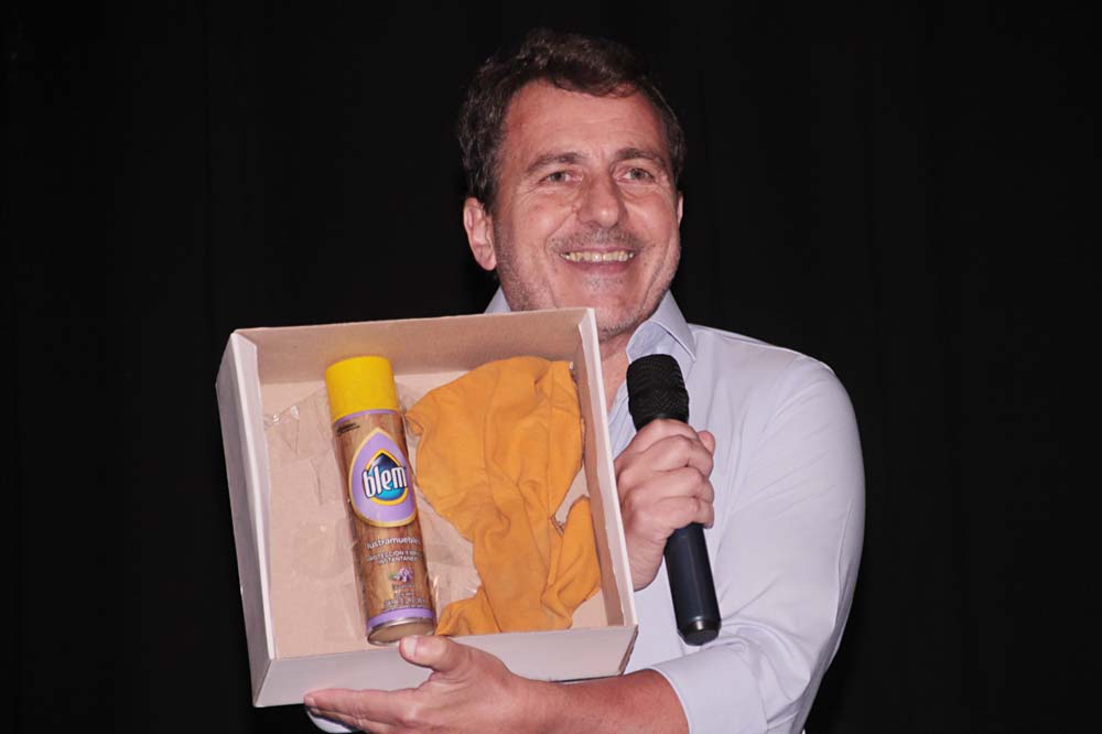 Ni bien se corrió el telón, Daniel Roncoli anunció con rostro circunspecto que la Sociedad Italiana de Cañuelas acababa de declararlo “Ciudadano ilustre”. Los aplausos estallaron al instante en la sala repleta y en un giro de comedia el escritor los cambió por carcajadas al exhibir una caja que contenía un tarro de Blem y una franela lustramuebles.