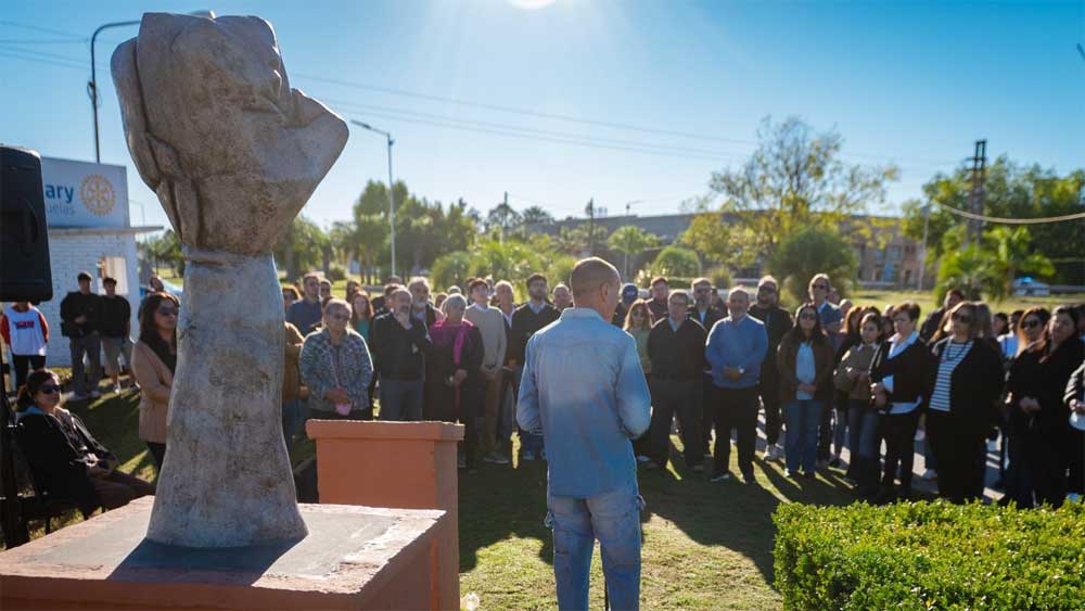 La conmemoración comenzó en el Pasaje Reimer, donde se realizó el acto protocolar con la entonación del Himno Nacional y la colocación de una ofrenda floral en la obra Resistencia, de Francisca Verd.