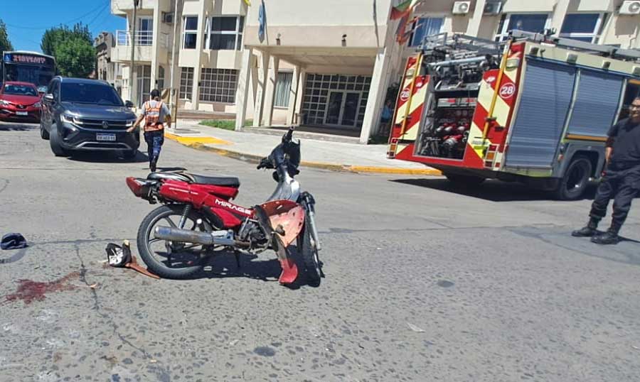 Una moto y un auto protagonizaron un siniestro que tuvo lugar este miércoles 18 de febrero en la esquina de Basavilbaso y Rivadavia, frente al edificio de la Asociación Española.