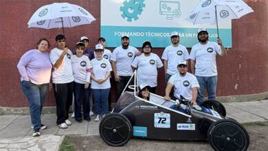Los alumnos Micaela González, Lucas Maderna, Matías Griebler, Facundo Loza, Brian Ramos y Marcelo Godoy recibieron las máquinas en forma simbólica, en representación de sus compañeros.