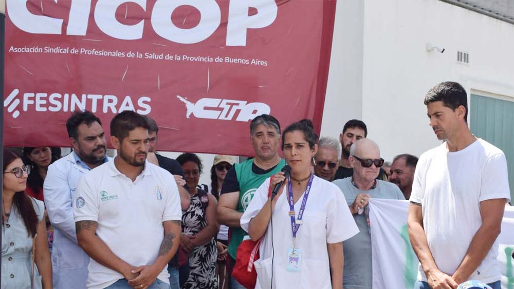 Tomaron la palabra la jefa de Gabinete del Ministerio de Trabajo de la Provincia de Buenos Aires, Cecilia Cecchini; la vicepresidenta de CICOP (entidad que nuclea a los médicos bonaerenses), Silvana Scali; el secretario General de ATE Buenos Aires, Claudio Arévalo y su homólogo de Capital, Daniel Catalano; el secretario General de ATE Cañuelas, Cristian Aristegui; y la enfermera y delegada de ATE dentro del Hospital Cuenca, Zoe Morineaga, entre otros.