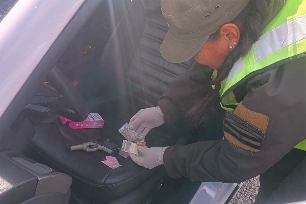 En el marco de un operativo de control vehicular desplegado en Ruta 3, agentes de la seccional Cañuelas de Gendarmería Nacional inspeccionaron un vehículo dentro del cual hallaron drogas, un arma y una significativa suma de dinero.