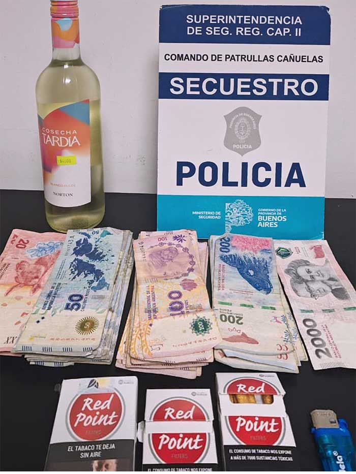 Momentos antes estos menores rompieron el vidrio de un comercio ubicado en 24 de Septiembre y Entre Ríos, propiedad de Lucas Sosa, de donde sustrajeron dinero en efectivo, una botella de vino blanco y tres paquetes de cigarrillos.