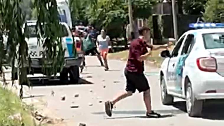 La localidad de Máximo Paz vivió una tarde convulsionada tras el homicidio de un vecino y la detención del presunto responsable. Allegados a la víctima y al homicida atacaron a la policía y como resultado de la batahola, destrozaron y quemaron dos móviles policiales.
