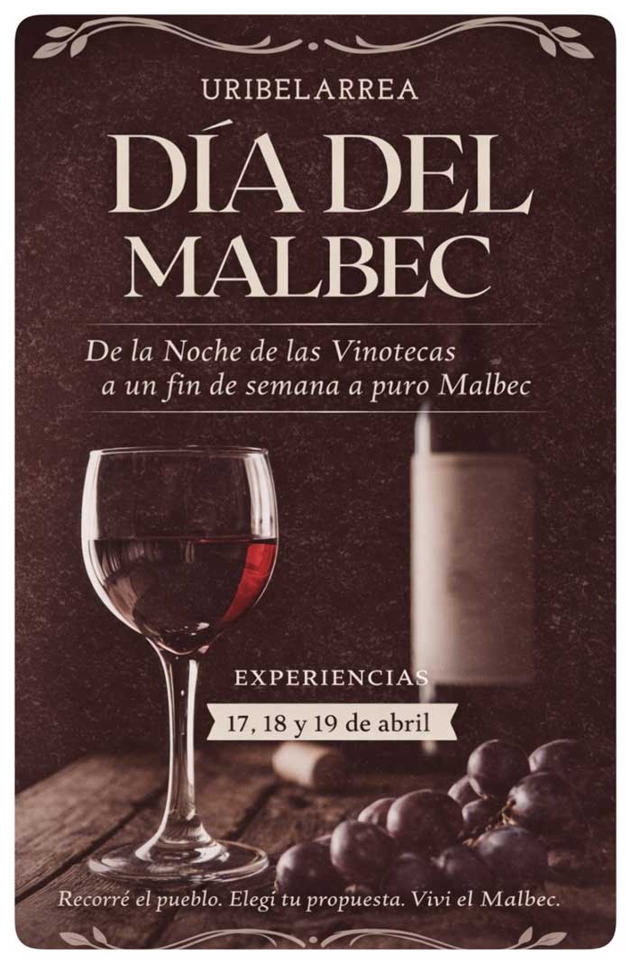 Con esa impronta, y en el marco de la Noche de las Vinotecas, el pueblo de Uribelarrea se prepara para vivir un fin de semana especial con el Malbec como hilo conductor.